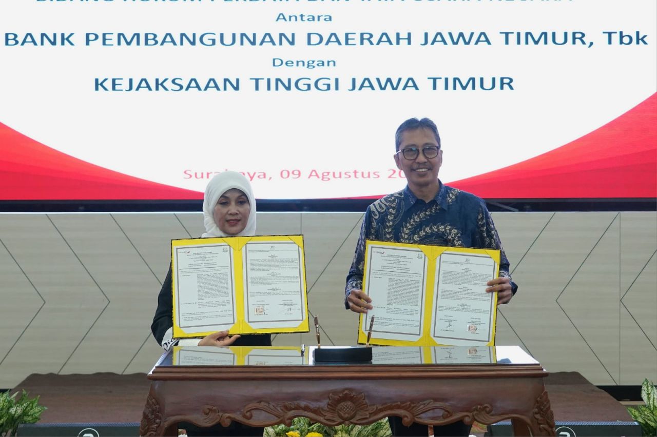 SURABAYA - PT Bank Pembangunan Daerah Jawa Timur Tbk atau bankjatim terus menjalin sinergi dengan Kejaksaan Tinggi Jawa Timur. Salah satu bukti nyata bentuk sinergitas yaitu dengan melakukan penandatanganan Perpanjangan Perjanjian Kerja Sama tentang Penanganan Permasalahan Hukum Bidang Perdata dan Tata Usaha Negara. Bertempat di Ruang Bromo bankjatim Kantor Pusat, perjanjian tersebut ditandatangani langsung oleh Direktur Utama bankjatim Busrul Iman dan Kepala Kejaksaan Tinggi Jawa Timur Mia Amiati pada hari Rabu (9/8).